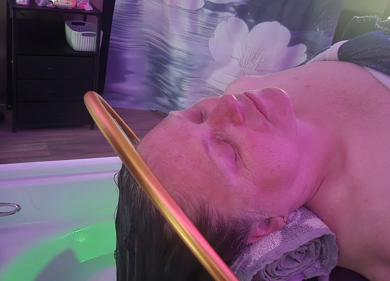 Bain de vapeur capillaire et massage crânien relaxant.